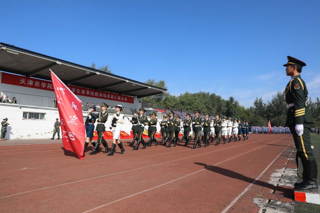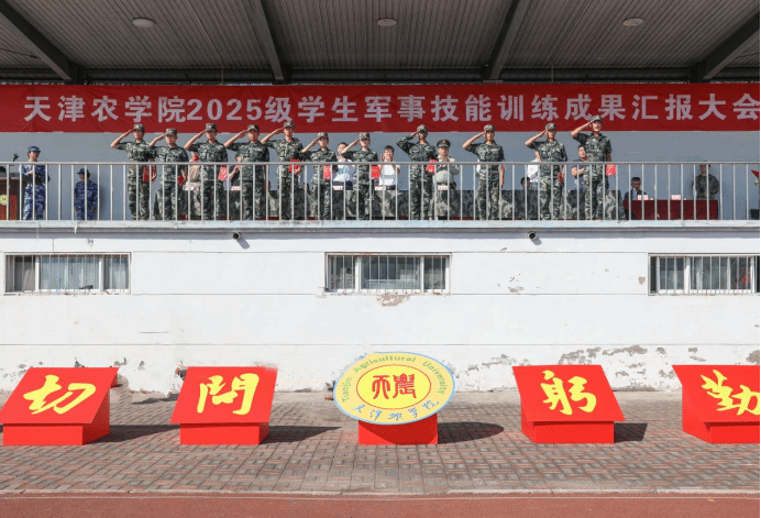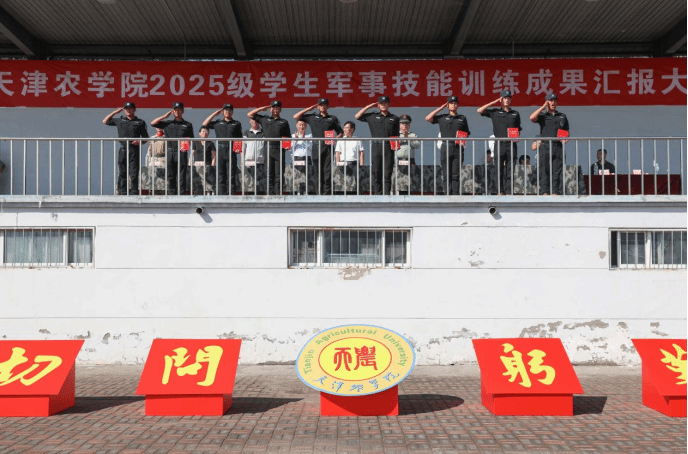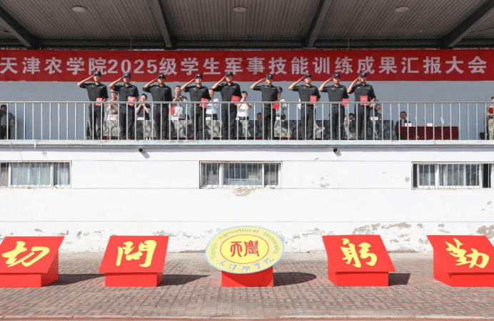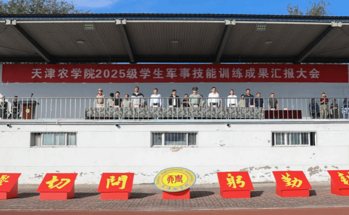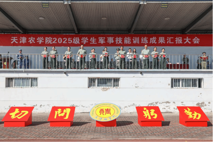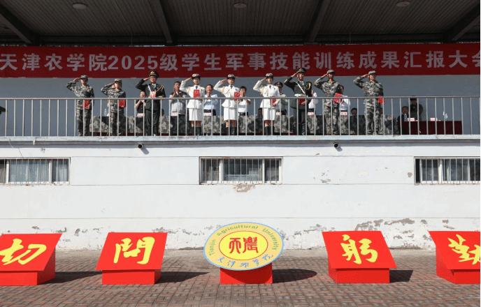 李鑫总结讲话,首先他向辛勤承担本次军训任务的天津警察学院15名教官、我校32名退伍大学生教官表达了感谢!也向一直关心和支持我校军训工作的各级领导和老师们表示最诚挚的谢意!并对2025级全体新生的军事技能训练成果给予充分肯定。他结合纪念中国人民抗日战争暨世界反法西斯战争胜利80周年阅兵与天津上合峰会背景,寄语2025级天农学子以此次军训为契机增强国防观念和国家安全意识,坚定听党话、跟党走的信念,厚植“爱党爱国爱农爱校”情怀,思源奋进,将军训中养成的良好习惯和作风带到今后的学习和生活中去。