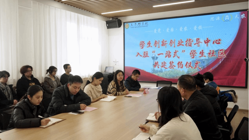 在全体参会人员的共同见证下,学工部、教务处双方代表正式签订共建协议书,标志着学生创新创业指导中心全面入驻一站式学生社区,双创育人服务阵地建设迈入新阶段。