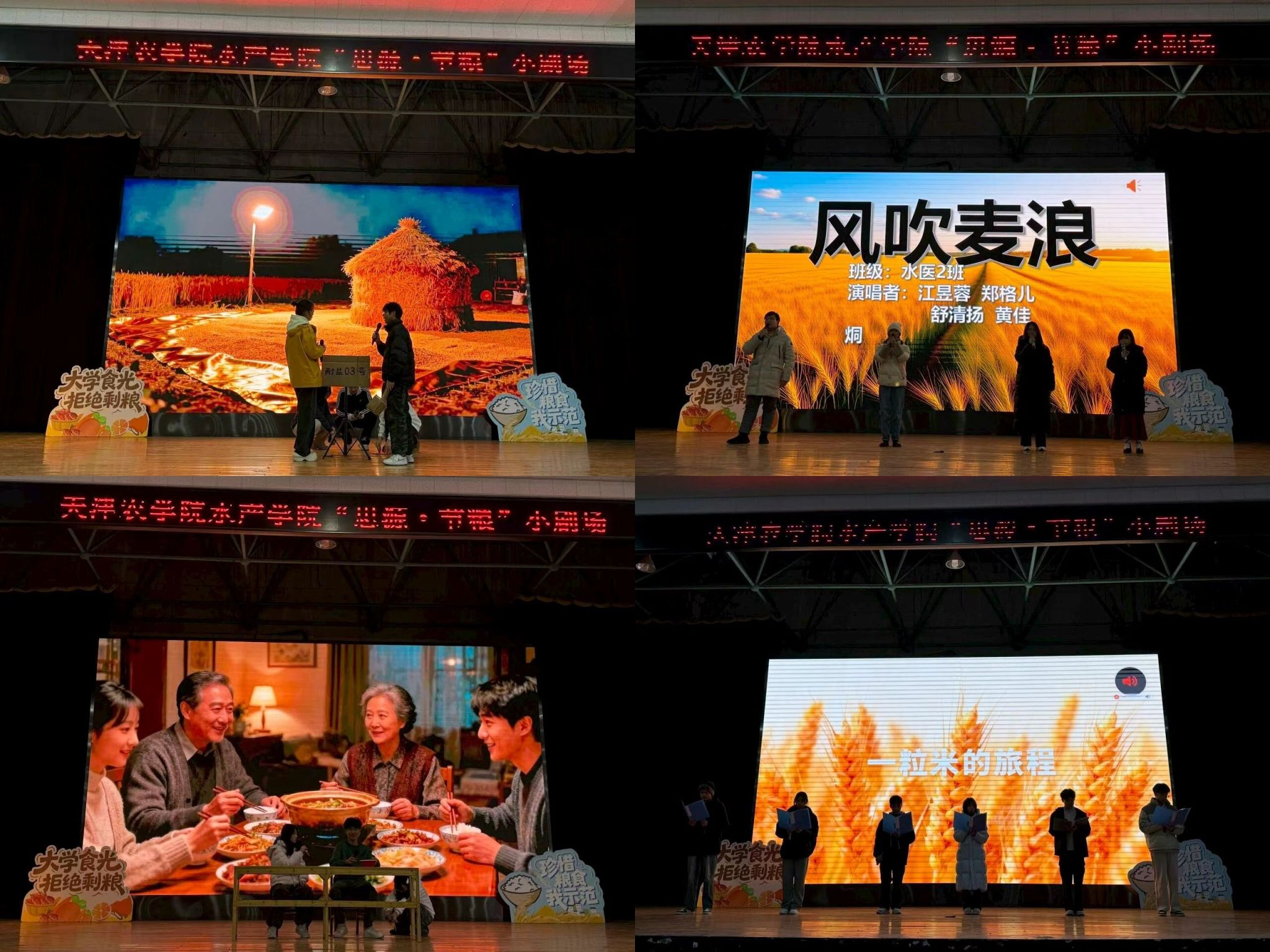 展演落幕时,全体表演者手持稻穗道具登台致谢,现场观众起身鼓掌,掌声与 “惜粮护渔” 的呼声交织,让节粮爱粮的种子在师生心中愈发鲜活。这场展演让我们真切感受到,粮食安全是每一个专业、每一份日常的共同责任。水产学院将以此次活动为起点,持续开展 “蓝色粮仓” 主题实践,推动节粮理念融入水产养殖、资源保护等专业学习,让 “思源护粮、以渔兴安” 的意识扎根校园,以点滴行动为国家粮食安全添注水产力量。