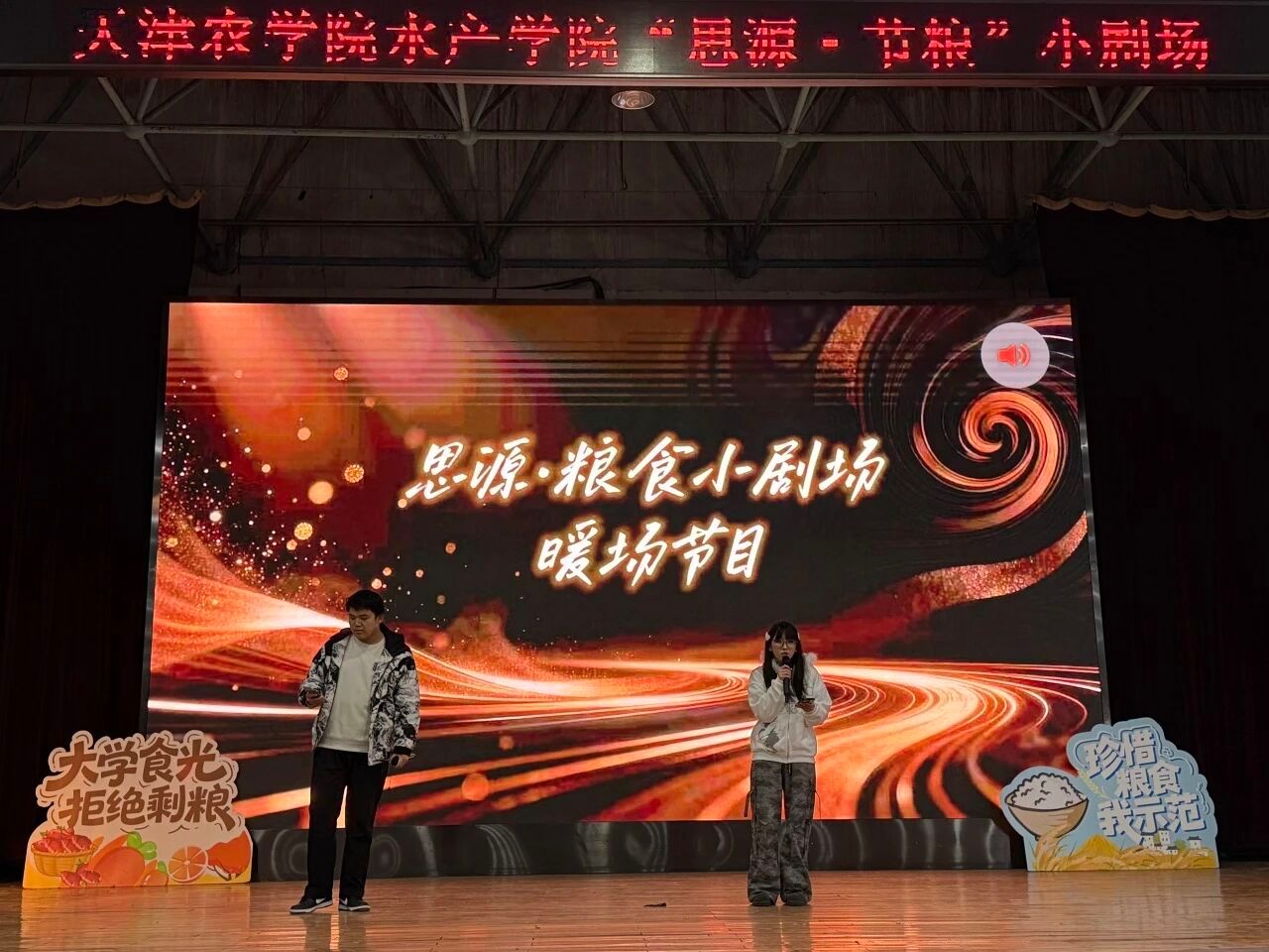 渔泽民生安,粮护海疆宁。我校党委学生工作部主办、水产学院承办的第七期“思源・粮食安全小剧场” 在西校区礼堂温情启幕。水产学院师生以 “蓝色粮仓” 为纽带,通过多元展演触摸水产粮食的生产脉络,厚植 “护渔惜粮” 的责任意识,让粮食安全的理念在专业实践与校园生活中落地生根。