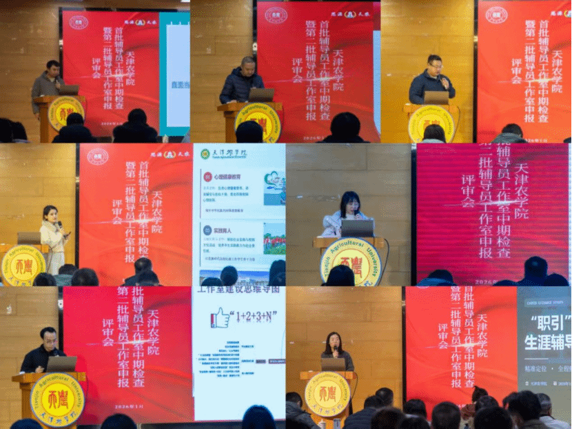 本次评审会共有8个天津农学院首批辅导员工作室(含培育项目)进行中期检查汇报,汇报内容高度聚焦一年来工作室的建设过程、培训研讨、开展活动、成果成效、存在问题及改进计划等方面。7个团队申报天津农学院第二批辅导员工作室,各工作室主持人进行了申报展示,详细阐述了工作室定位、建设目标、创新点及预期成果等内容。