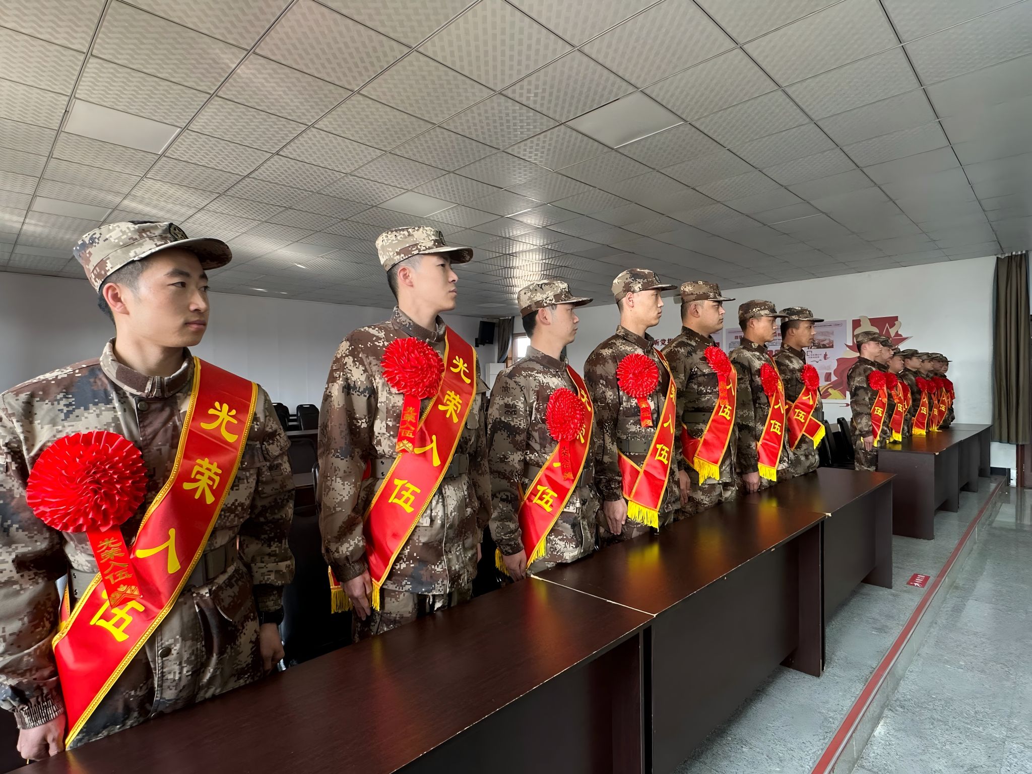 训练基地内,14名新兵身着迷彩军装,身姿挺拔、精神昂扬,眼神中既有对军旅生涯的热切向往,更有保家卫国的坚定担当。作为天农学子,他们主动响应国家征兵号召,携笔从戎,以“青春向国防”的自觉,将个人理想融入强国强军伟业,用行动诠释“爱党爱国爱农爱校”的追求,为全校青年树立了榜样。