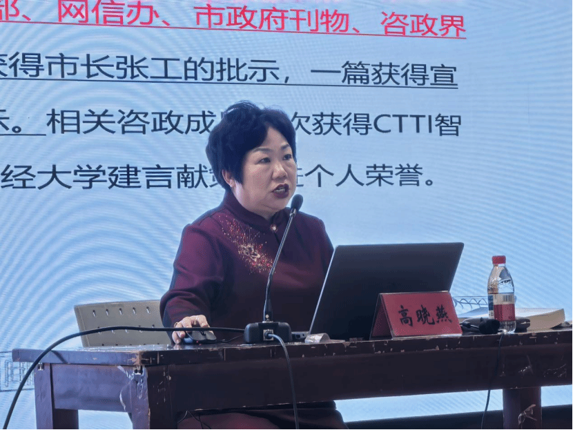 作为高校服务国家战略的重要纽带,咨政报告既是学术成果转化的重要载体,更是学者践行"把论文写在祖国大地上"的生动实践。高晓燕教授深入浅出地讲解了关于咨政成果与团队建设、智库写作的选题与基本原则、咨政报告的选题技巧与写作等内容,分享了咨政报告写作的体会,就如何以团队之力打造有深度、有温度、有力度的智库成果与我校师生进行了分享与探讨。整场讲座内容详实,互动环节气氛热烈,本次讲座特别组织思政系列职称辅导员及青年骨干教师参与,推动思想政治教育与智能技术的深度融合。通过培养思政工作者的“数字素养”,可实现从“经验判断”到“数据决策”的治理转型,为辅导员精准把握学生思想动态提供新工具,促进辅导员开展“AI+思政”课题研究,打造具有特色的智慧思政工作体系。